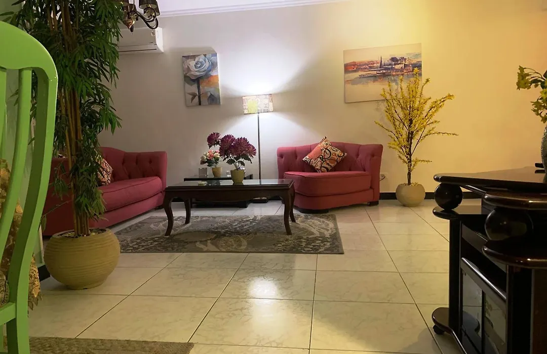 Con una zona de estar, el Casa Elegant - Nasr City está equipado con un sofá y un escritorio y ofrece comodidades como climatizador. La habitación está equipada con TV de pantalla plana con canales vía satélite para el entretenimiento de los huéspedes. Este apartamento incluye 2 dormitorios. Este alojamiento tiene 1 cuarto de baño con inodoro y bañera. Además, el baño está equipado con secadora.